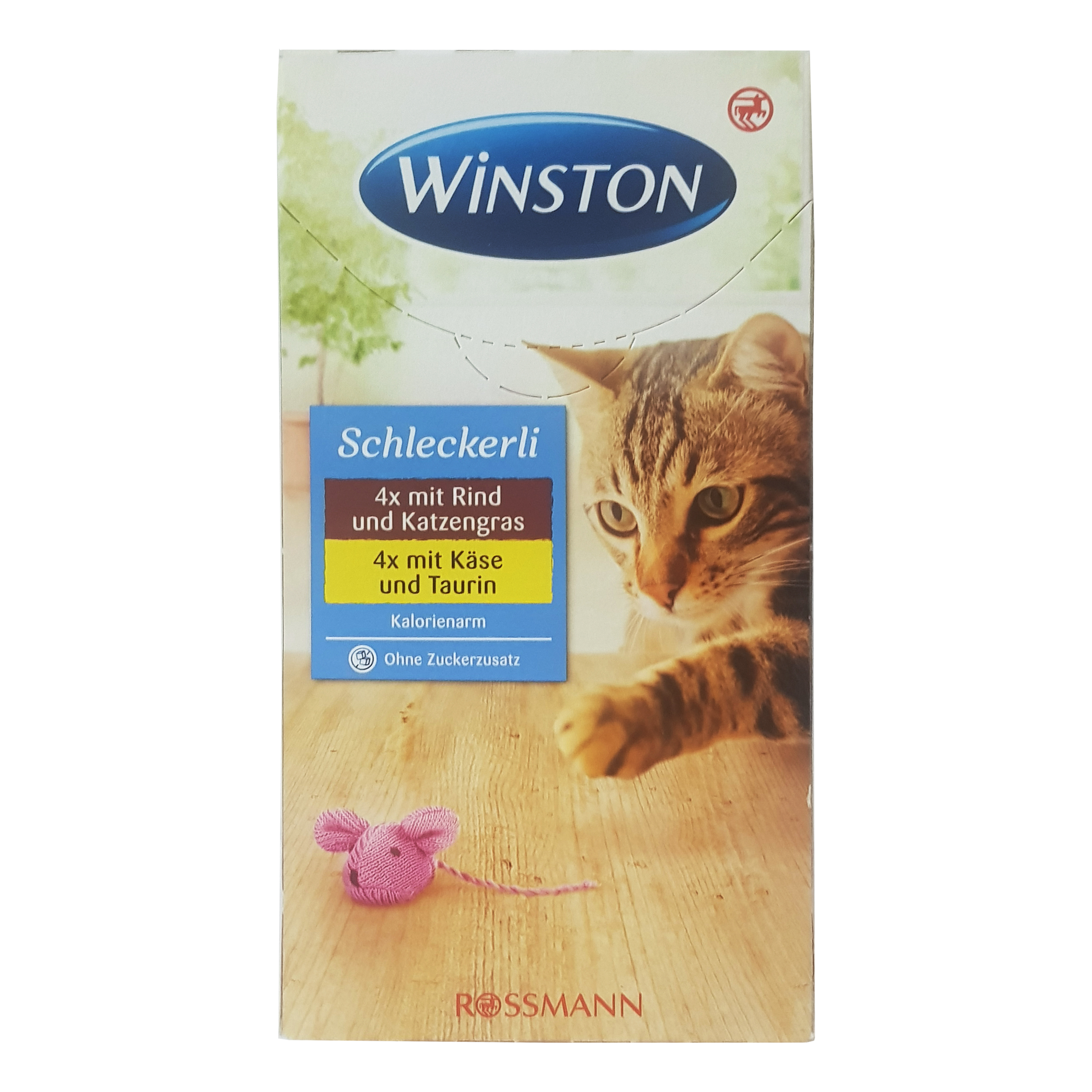 بستنی گربه وینستون، یک تشویقی برای گربه های بالغ، بستنی گربه وینستون یک میان وعده کم کالری، متنوع و خوشمزه برای گربه شما است. که از مواد غذایی خوشمزه مانند پنیر ساخته شده و بسیار مناسب گربه های بد اشتها میباشد. Winston Schleckerli ، این محصول را میتوان بصورت منحصرا و یا بهمراه غذای خشک ( مثل سُس ) به گربه هایی که بد اشتها هستند یا بعنوان تشویقی داد. حالت ژلاتینی بودن این محصول حس چشایی گربه را تحریک میکند و همین امر موجب میشود تا گربهی شما به خوردن غذا ترغیب شود.حاوی 4 عدد بستنی با طعم گوشت گاو و 4 عدد بستنی تشویقی با طعم پنیر میباشد.