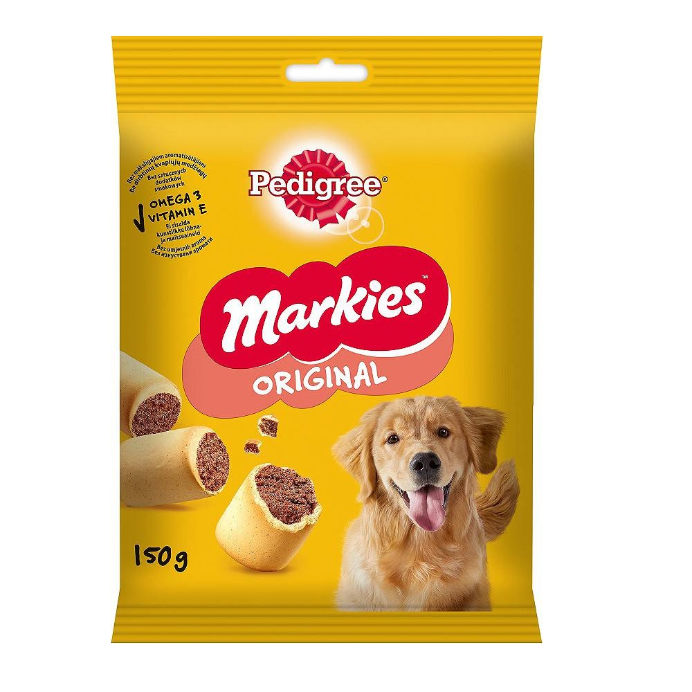 تشویقی سگ پدیگری مدل مارکیز مناسب برای همه نژادها و سگهای بالغ بیسکوییتی و صدادار جهت جذابیت بیشتر برای سگها میباشد. پدیگری اورجینال دارای انواع ویتامین ها و مواد معدنی و آنتی اکسیدان ها غنی از امگا3 و ایده آل برای جایزه هنگام فعالیت های آموزشی می باشد .
