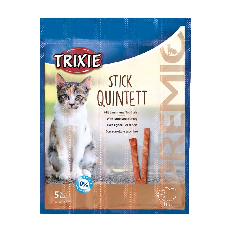 تشویقی مدادی تریکسی گربه با طعم بره و بوقلمون (Trixie Stick Quintett Lamb & Turkey)، یک تشویقی مناسب برای تشویق و تربیت گربههاست. این تشویقی از گوشت و فرآوردههای جانبی حیوانی (95%، 6% گوشت بره، 6% بوقلمون)، مواد معدنی، یوکا شیدیگرا، تورین تهیه شده است.