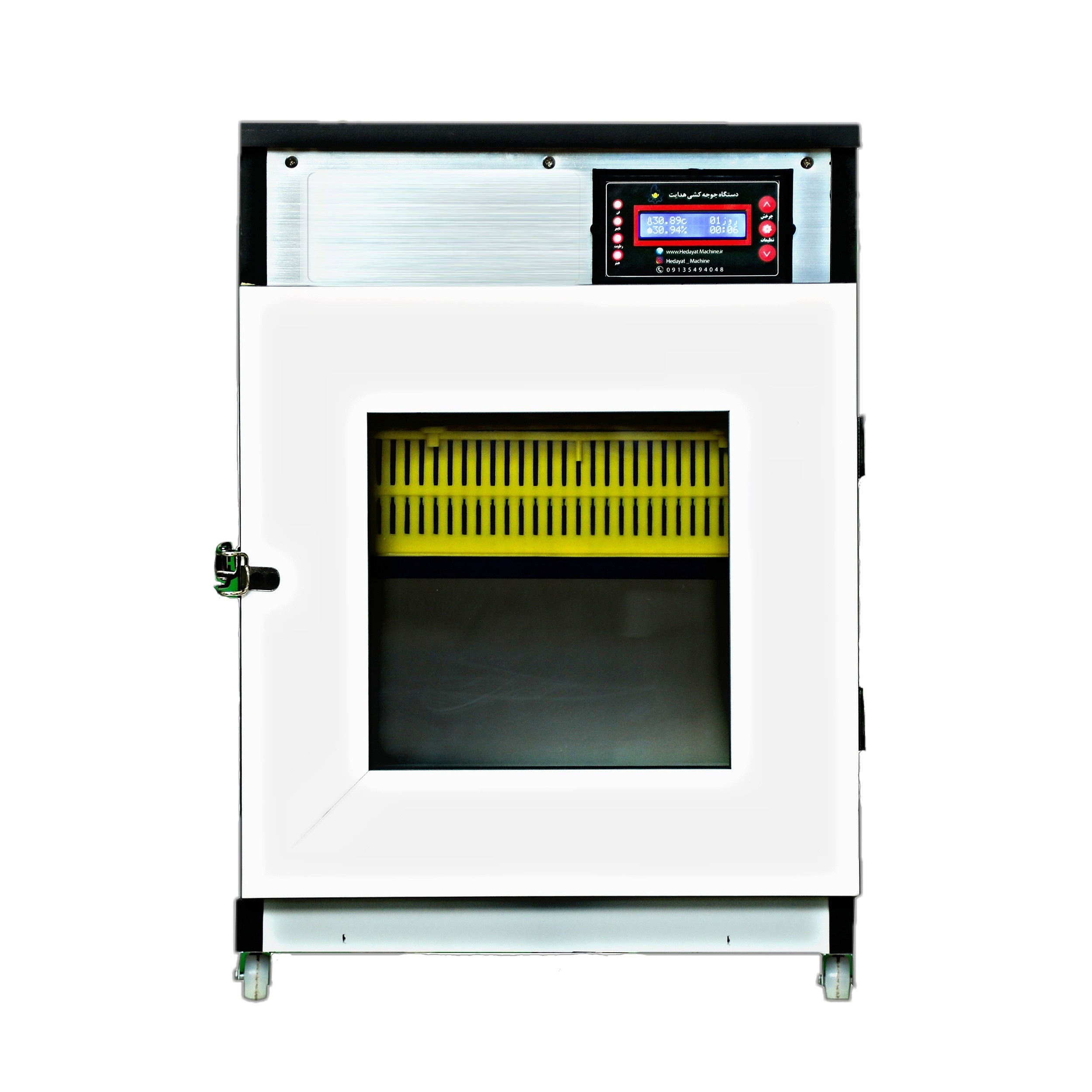 دستگاه جوجه کشی هدایت ظرفیت 42 عدد تخم مرغ،25 عدد بوقلمون،96 عدد بلدرچین و 64 عدد کبک دارا می باشد.