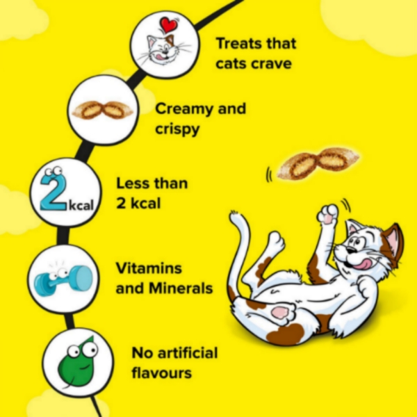 مناسب برای گربه های بالای 8هفته است و برای گربه های بزرگسال تا 20 تکه در روز و در بچه گربه ها تا 6 تکه در روز استفاده گردد. (غذای اصلی را بر اساس میزان مصرف تشویقی ، کاهش دهید).