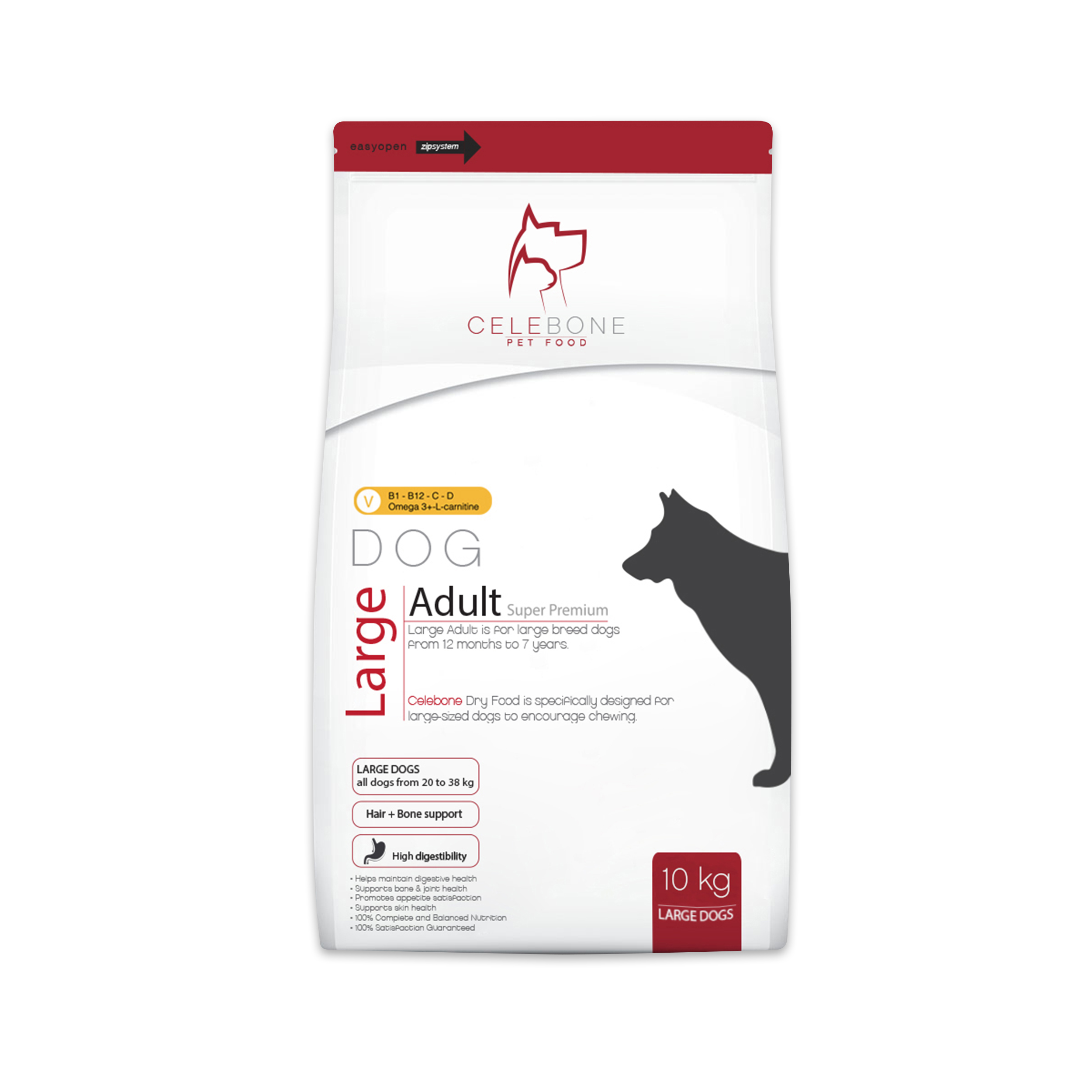 غذای خشک سگ های نژاد بزرگ انرژی لازم برای عضله سازی سگ را تامین کرده همچنین وجود سلنیوم و ویتامین E ،جذب آنتی اکسیدان لازم برای سگ را بالا می برد. ترد بودن دانه های غذای خشک باعث تمیز شدن دندان ها و کاهش پلاکت های دندان می گردد. غذای خشک سلبن برای انواع نژاد سگ بزرگ با هر مقدار فعالیت و هر سنی در نظر گرفته شده است.