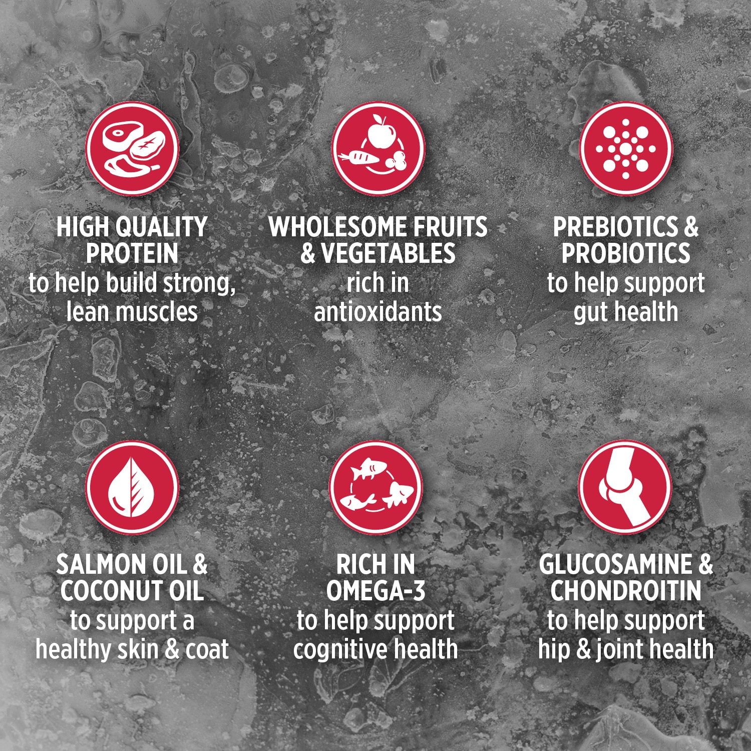 فرمول Prairie Red در کانادا با منابع تازه کانادایی از گوشت گاو، گاومیش کوهان دار، گراز وحشی، ماهی صید شده در اقیانوس آرام و جگر گوشت گاو خشک شده به روش انجماد سریع تهیه شده است و فاقد هیچ گونه مواد اولیه منجمد می باشد تا طعمی عالی داشته باشد که حتی سختگیرترین سگ ها هم نسبت به این محصول شور و اشتیاق نشان می دهند. این فرمول فاقد غلات و گوشت مرغ است و حاوی تکه های یخ زده Nutriboost برای تغذیه بهینه می باشد. ترکیبات این محصول به شرح زیر می باشد: گوشت گاو بدون استخوان، بره بدون استخوان، گراز وحشی بدون استخوان، جگر گاو، جگر گوسفند، جگر گراز وحشی، گاومیش کوهان دار بدون استخوان، غذای خوک، آرد بره، ماهی قزل آلا، شاه ماهی، ماهی کاد، جگر ماهی، نخود، چربی خوک (حفظ شده با توکوفرول های مخلوط)، کامل تخم مرغ، عدس قرمز، سیب زمینی شیرین، نخود، طعم طبیعی گوشت خوک، کنجاله یونجه خشک شده، جگر گوشت گاو خشک شده منجمد، کدو حلوایی خشک شده، صدف سبز خشک شده یخ زده، جگر ماهی منجمد، کلپ خشک شده یخ زده، روغن ماهی قزل آلا روغن شاه ماهی، روغن نارگیل، کدو تنبل، کدو حلوایی، هویج، اسفناج، کلم بروکلی، سیب، زغال اخته، زغال اخته، انار، عصاره درخت عرعر، زنجبیل، رازیانه، بابونه، برگ نعناع، ریشه شیرین بیان، زردچوبه، ریشه سنبل الطیب، ویتامین ها [ مکمل E، مکمل ویتامین A، نیاسین، پانتوتنات کلسیم، ریبوفلاوین، پیریدوکسین هیدروکلراید، تیامین مونونیترات، بیوتین، مکمل ویتامین B12، مکمل ویتامین D3، اسید فولیک]، مواد معدنی [سولفات روی، پروتئینات روی، پروتئین آهن، سولفات آهن، پروتئین مس سولفات مس، پروتئینات منگنز، اکسید منگنز، یدات کلسیم، سلنیت سدیم]، کلرید پتاسیم، کلرید کولین، نمک، تورین، DL-متیونین، ال-لیزین، عصاره ریشه کاسنی، عصاره یوکا اسکیدیگرا، عصاره تیره گلو، مخمر هیدروکلراید، عصاره رزماری، کندرویتین سولفات، ال کارنیتین، محصول تخمیر لاکتوباسیلوس اسیدوفیلوس خشک، محصول تخمیر لاکتوباسیلوس کازئی خشک، محصول تخمیر خشک بیفیدوباکتریوم بیفیدوم، محصول تخمیر انتروکوکوس فسیلی خشک شده.. این محصول تولید کشور کانادا می باشد.