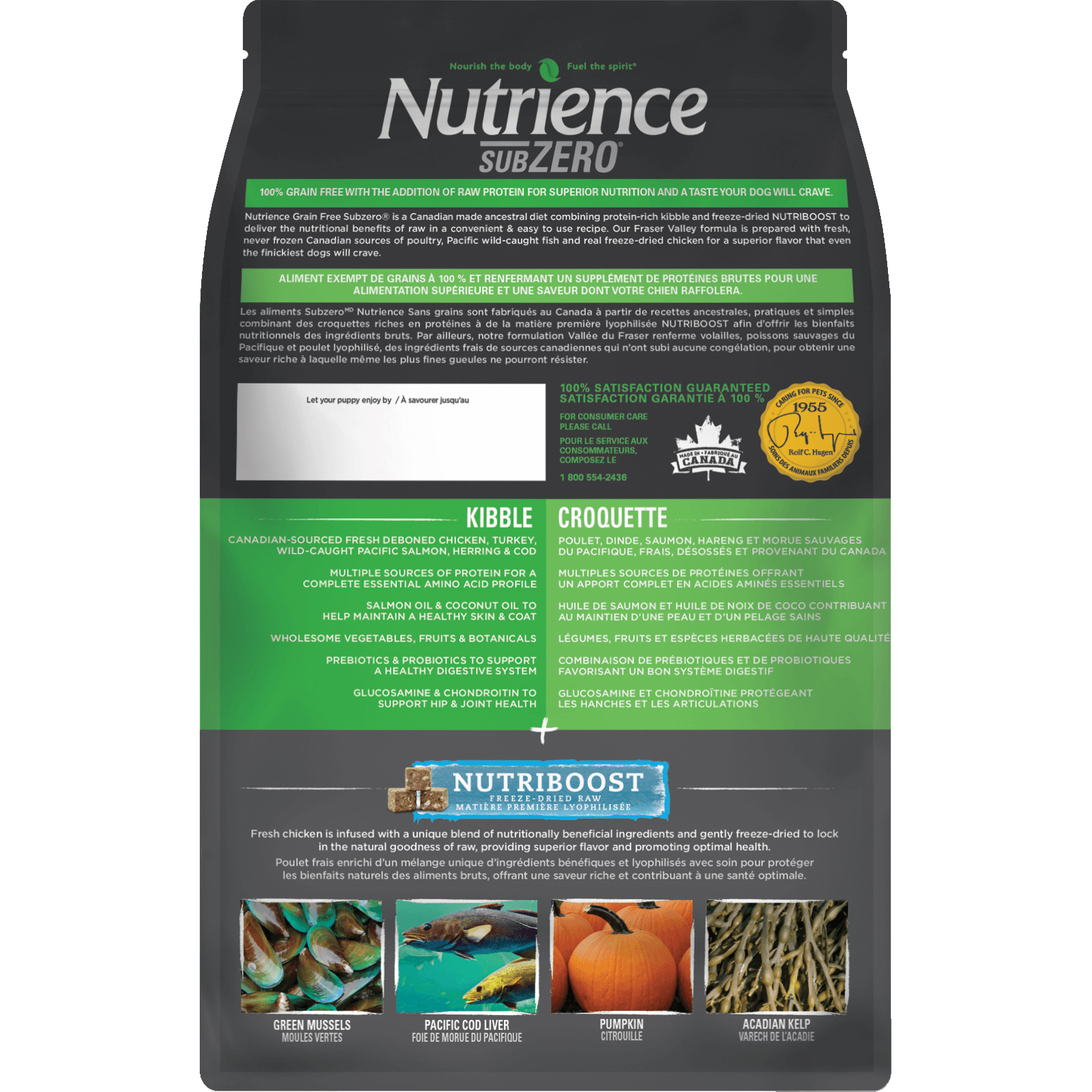 ما به تامین مرغ تازه، گوشت، ماهی های صید شده وحشی و تولید مستقیم از کشاورزان، دامداران و ماهیگیران کانادایی افتخار می کنیم – مرغ و بوقلمون از دره فریزر و ماهی های صید وحشی که در آب های سرد و شفاف اقیانوس آرام فراوان است. ترکیبات این محصول به شرح زیر می باشد: مرغ بدون استخوان، بوقلمون بدون استخوان، غذای مرغ، غذای بوقلمون، ماهی قزل آلا، جگر مرغ، قلب مرغ، جگر بوقلمون، قلب بوقلمون، شاه ماهی، ماهی کاد، جگر ماهی، نخود فرنگی، عدس قرمز، چربی مرغ (حفظ شده با توکوفرول های مخلوط)، سیب زمینی شیرین، نخود، تخم مرغ کامل، طعم طبیعی مرغ، کنجاله یونجه خشک شده، مرغ منجمد، کدو تنبل خشک، جگر مرغ خشک شده، صدف سبز خشک شده، جگر ماهی منجمد، کلپ خشک شده یخ زده، روغن ماهی قزل آلا (منبع طبیعی DHA)، روغن شاه ماهی، روغن نارگیل، کدو تنبل، کدو حلوایی، هویج، اسفناج، بروکلی، سیب، زغال اخته، زغال اخته، انار، عصاره درخت عرعر، زنجبیل، رازیانه، بابونه، برگ نعناع، ریشه شیرین بیان، زردچوبه، ویتامین ها [مکمل ویتامین E، مکمل ویتامین A، نیاسین، پانتوتنات کلسیم، ریبوفلاوین، پیریدوکسین هیدروکلراید، تیامین مونونیترات، بیوتین، مکمل ویتامین B12، مکمل ویتامین D3، اسید فولیک]، مواد معدنی [سولفات روی، پروتئینات روی، پروتئینات آهن، فروس سولف پروتئینات مس، سولفات مس، پروتئینات منگنز، اکسید منگنوز، یدات کلسیم، سلنیت سدیم]، نمک، کلرید پتاسیم، کلرید کولین، ال لیزین، DL-متیونین، عصاره ریشه کاسنی، عصاره یوکا اسکیدیگرا، عصاره آویشن، مخمر، عصاره رزماری، تورین، کندرویتین سولفات، ال-کارنیتین،. این محصول تولید کانادا می باشد.