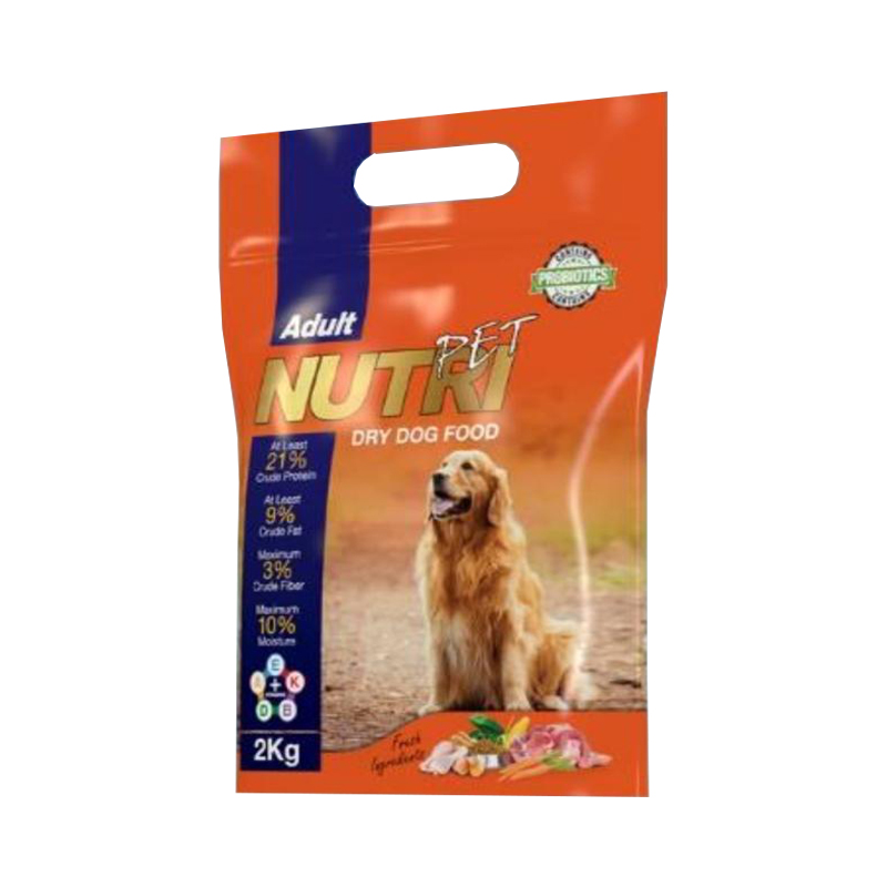 غذای خشک پروبیوتیک سگ نوتری پت مناسب برای سگ های بالغ دارای 21% پروتئین حاوی گوشت مرغ ، گوشت قرمز ، پودر استخوان ، پودر تخم مرغ ، فیبر ، ویتامین ها و املاح معدنی و دارای مجوز از سازمان دامپزشکی می باشد.