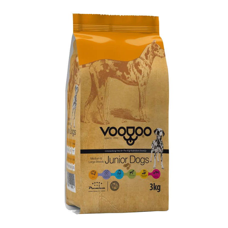 اگر در انتخاب غذای خشک برای سگ های جوان در رده سنی 6 تا 18 ماه در نژاد های بزرگ مانند ژرمن شپرد بلژین مالینوز هاسکی و روتوایلر و پیتبول و از این دست نژاد ها دچار وسواس هستید غذای خشک برند وودو شما را حتما راضی نگه خواهد داشت .این محصول تماما از محصولات اورگانیک و پروتئین های حیوانی غیر فرآوری شده استفاده میکند . این محصول تولید شرکت مکمل اصفهان می باشد که سال ها در امر فرموله کردن محصولات شرکت های نامدار در عرصه تولید غذای حیوانات خانگی ، فعالیت عمده داشته است و با ورود به امر تولید مستقیم محصول غذای سگ و گربه با استفاده از دانش و تجربه کافی و داشتن آزمایشگاه و پرسنل مجرب و با تجربه توانسته یک محصول با قیمت مناسب و کیفیت بسیار عالی تولید و در عرصه دوست داران حیوانات خانگی قرار دهد . اما این محصول دارایه چه مواد مغزی و چه نوع ویژگی هایی میباشد که به صورت خلاصه در ادامه به آن می پردازیم این محصول از پروتئین حیوانی طیور ، پروتئین گوشت خالص ، ماهی ، برنج ، بلغور جودوسر ، روغن ماهی ، روغن گیاهی ، پروتئین هیدرولیز شده و فیبر و ذرت و گلوتن ذرت و گندم . کلرید سدیم . بایندر ضد قارچ تولید شده است .