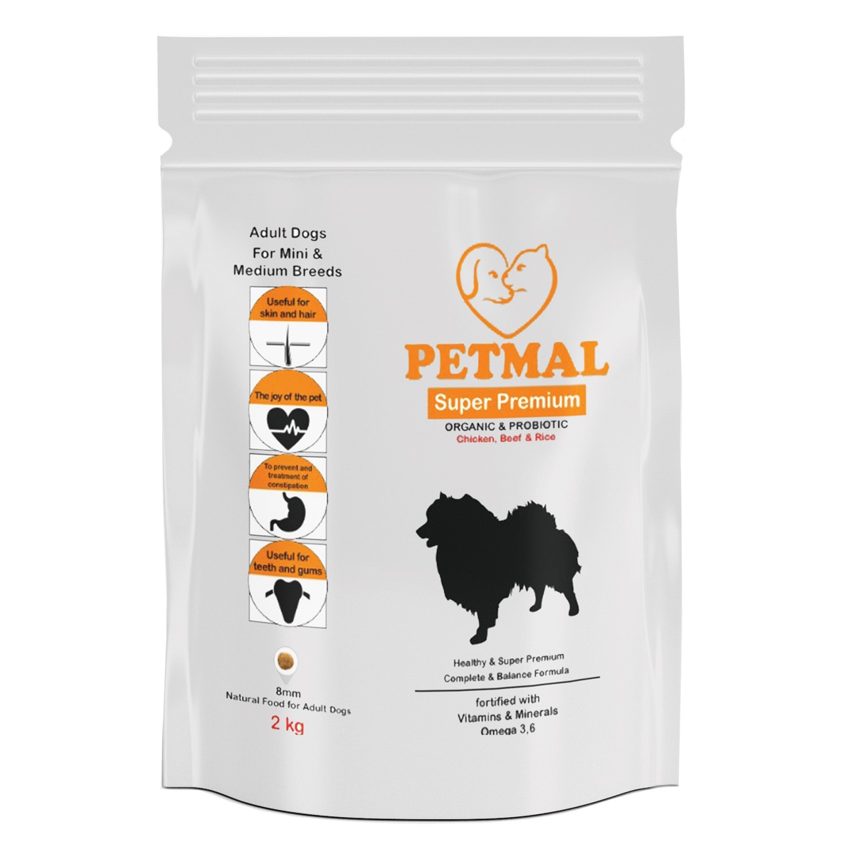 مواد موجود در این محصول سبب شادابی و نشاط در نژادهای کوچک و حفاظت از سیستم گوارشی آنها می شود. سگ ها معمولا در سنین پایین دارای فعالیت زیاد می باشند، غذای پتمال با در نظر گرفتن کلیه نیازهای این سگ ها و تهیه جیره ای مناسب، سعی در حفظ سلامت و بهبود کیفیت زندگی آنها در طول عمرشان نموده است.. فواید روغن ماهی (به دلیل دارا بودن امگا 3و6)موجود در این غذا برای سگ ها عبارت است از: کاهش التهاب، کاهش آلرژی و جلوگیری از انواع خاصی از سرطان. وجود روغن زیتون در این غذا باعث تناسب اندام سگ، افزایش دهنده طول عمر، باعث افزایش بازدهی ذهنی و مغزی و زیبایی مو می شود و گل گاوزبان، آرمش دهنده اعصاب و رزماری به عنوان یک آنتی اکسیدان از دیگر ویژگی های این غذا می باشد.