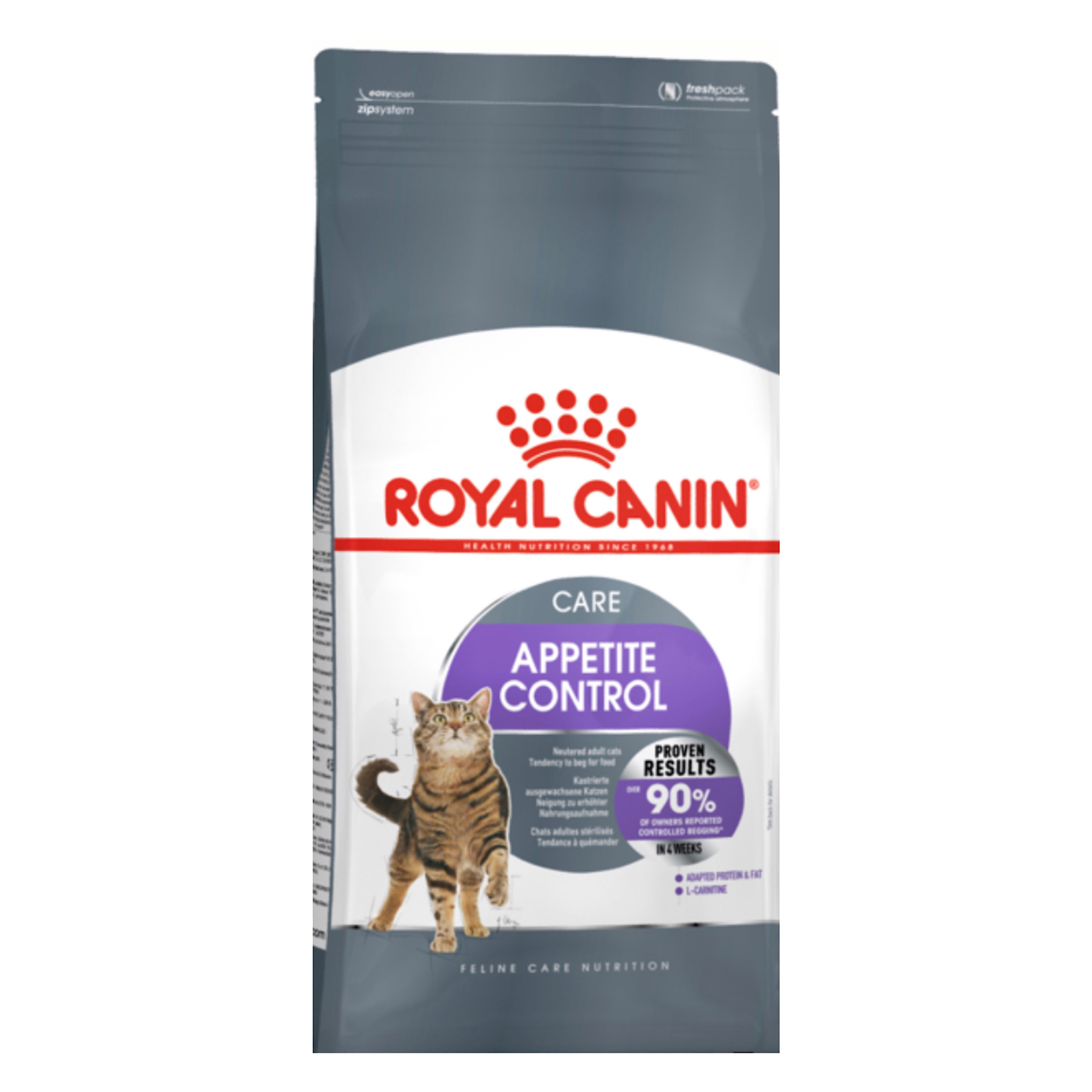 بیش از 90٪ صاحبان، رفتار التماس کنترل شده بین وعده های غذایی را پس از 4 هفته، زمانی که گربه هایشان با مراقبت کنترل اشتها رویال کانین تغذیه شد، گزارش کردند.