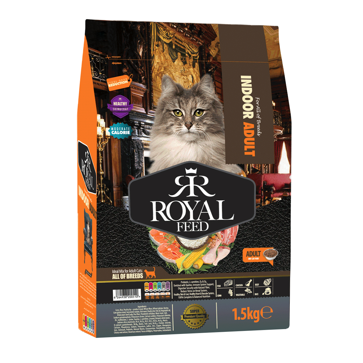 غذای خشک گربه رویال فید مدل Indoor Adult مخصوص گربههای بالغ است. این غذا در بستهبندی 1500 گرمی به بازار عرضه شده است و ابعاد بسته آن 9 × 25 × 35 سانتیمتر است. این غذا برای گونه حیوانی گربه است و با توجه به ماهیت متفاوتی که دارد بهتر است برای حیوانات دیگر استفاده نشود. از مزیتهای خوب این محصول میتوان به استفاده از مواد اولیه ارگانیک و طبیعی آن اشاره کرد. این غذای خشک با کیفیت ساخت سوپر پرمیوم تولید شده است. غذای گربه رویال فید به حفظ سلامتی و شادابی گربه کمک میکند. ناگفته نماند که این غذا از ذرت، برنج، پودر گوشت طیور، آرد گندم، پودر ماهی، چربی طیور، جو، پروتئین ایزوله سویا، فیبر نخود، پودر سلولز، روغن ماهی، روغن گیاهی، سدیم پیروفسفات، سیترات پتاسیم و …ساخته شده است و حاوی 3680 کیلوکالری انرژی، 6.2% خاکستر، 30% پروتئین، 12% چربی، 5.2% فیبر و 10% رطوبت است.