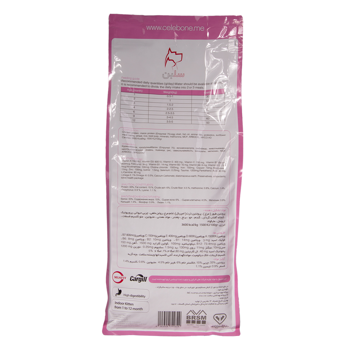این محصول در بستهبندی ۲.۵ کیلوگرمی توسط شرکت ایرانی سلبن تولید شده است و تا چند ماه میتواند پاسخگوی نیازهای تغذیهای پت شما باشد. دقت داشته باشید که بهتر است این غذا را به گربههای بالغ و عقیمشده ندهید؛ چرا که فعالیت بدنی و در نتیجه سوختوساز آنها کمتر است و در صورت مصرف این غذا، دچار اضافه وزن میشوند. این غذا بهخاطر داشتن کالری بالا، برای بچه گربههای در حال رشد مناسب است.