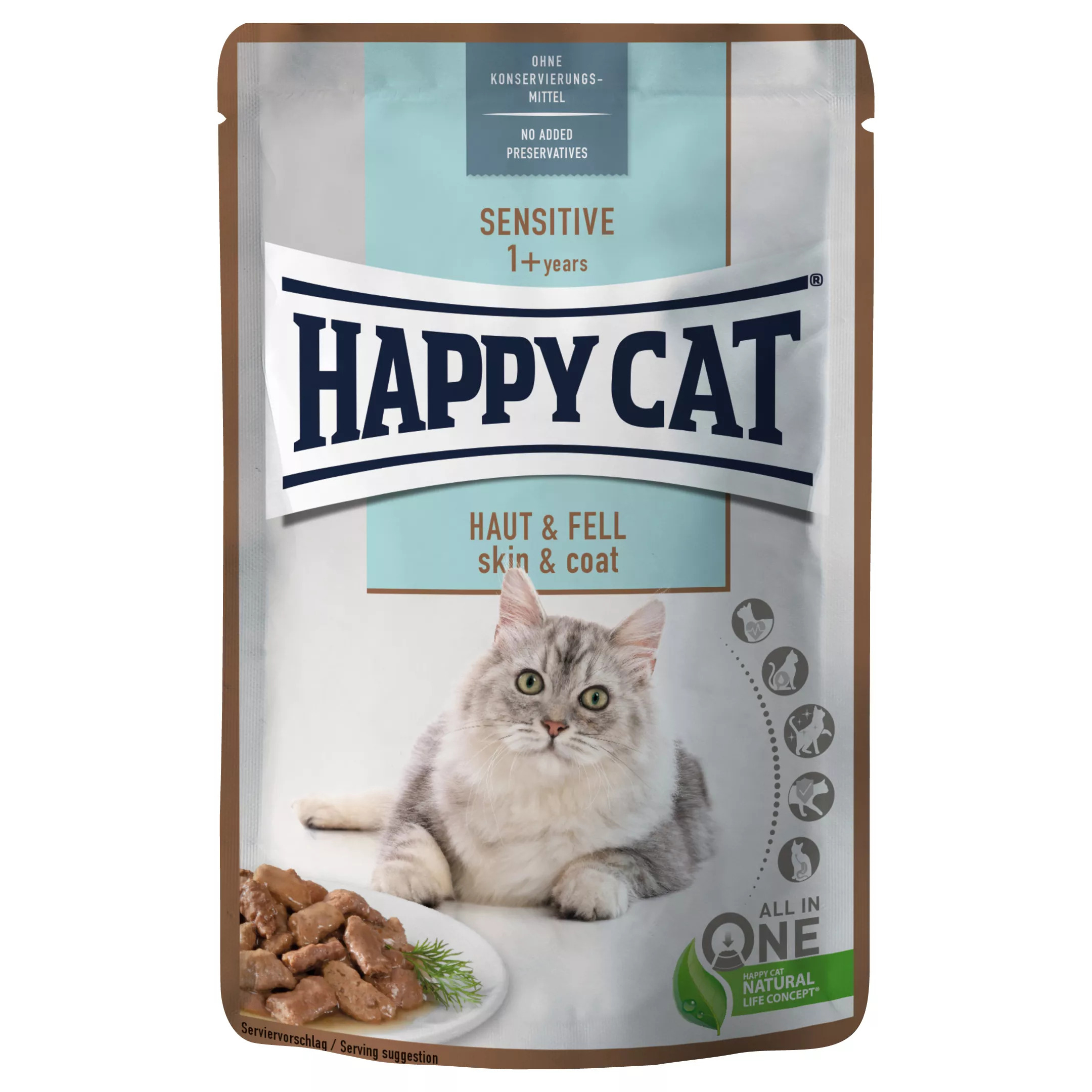 غذای پوچ گربه هپی کت مدل حساس skin & coat وزن 85 گرم