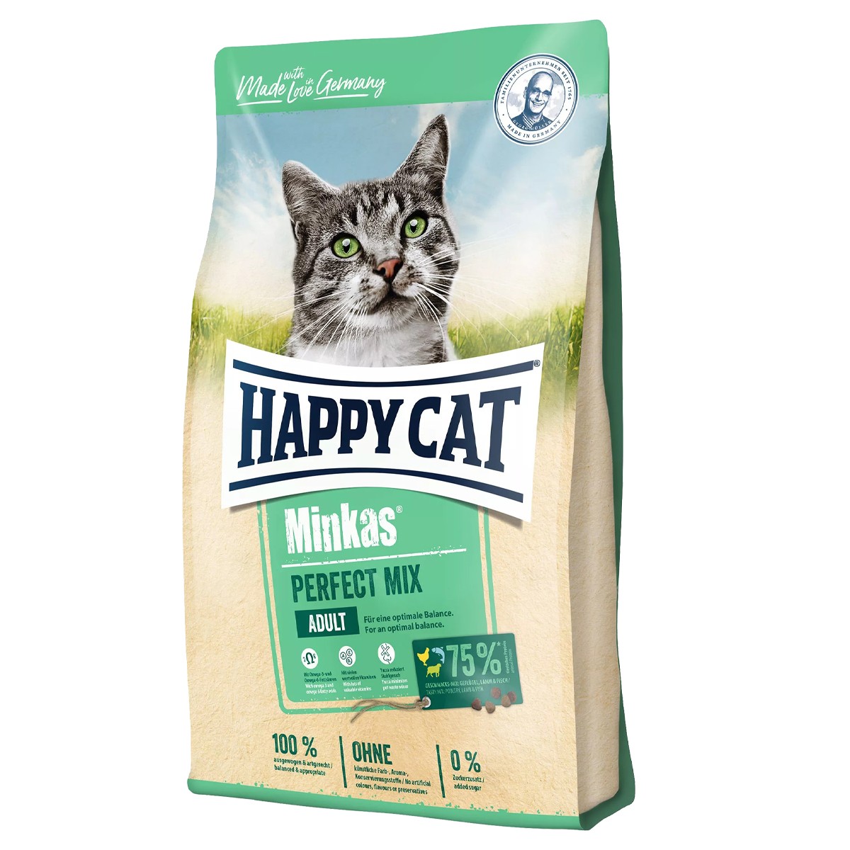غذای خشک گربه مدل مینکاس پرفکت میکس همه ی عناصر مهم جهت یک رژیم غذایی سالم و متعادل برای تمام گربههای بالغ را دارا می باشد. در تهیهی این غذای گربه، از مواد اولیه ارگانیک و دست چین وابسته به Happy Cat استفاده شده است. پروتئین حیوانی مغذی، بدون سویا و دیگر عصاره های پروتئین گیاهی و دانه های با کیفیت بالا باعث شده محصول Minkas Perfect Mix به خوبی پذیرفته و به راحتی قابل هضم باشد.
