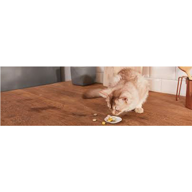 نگهداري از يک بچه گربه با توجه به حساسيت هاي فراواني دارند نيازمند دقت و توجه بسيار مي باشد. رژيم غذايي کيتن ها بايد به نحوي باشد که اغلب مواد، ويتامين ها و املاح معدني مورد نياز آنها را به طور کامل در اختيارشان قرار دهد. اما مشکل اينجاست که بچه گربه ها عموما حيوانات بدغذايي هستند و با بسياري از گروه هاي مواد غذايي کنار نمي آيند. اين امر سبب مي شود تا به مکمل ها و مولتي ويتامين ها نياز پيدا کنند. قرص مکمل بچه گربه آلماني جيم کت مدل Kitten Tabs طعم شير وزن 40 گرم براي بچه گربه هاي بالاي 2 ماه در تمامي نژادها مناسب است. اين محصول از ترکيب ويتامين هاي ضروري و کلسيم طبيعي تهيه شده است و براي ايجاد رشد بهينه بسيار کاربردي است. مصرف آن عوارض گوارشي به دنبال نخواهد داشت. همچنين فرمولاسيون محصول با تورين غني شده است که براي افزايش بينايي و بهبود کارايي قلب فوق العاده مفيد و موثر است. ال کارنيتين موجود در اين خوراک از تامين انرژي مورد نياز براي بچه گربه ها حمايت کرده و سبب افزايش نشاط و شادابي حيوان مي شود. در توليد اين خوراک از شير و مشتقات آن، روغن و چربي ها، انواع قند، مخمر ها، گوشت و مشتقات حيواني، مشتقات گياهي، ميوه ها (قرص هاي صورتي)، علف خشک (قرص سبز)، تورين، ال کارنيتين و کلسيم استفاده شده است. آناليز ترکيبات محصول بدين صورت است : پروتئين 25%، چربي 24%، مواد معدني 6%، فيبر 1% و رطوبت 4.5%. براي بچه گربه خود به صورت روزانه از اين محصول استفاده کنيد. هر روز 8 عدد قرص را به طور عادي و يا به صورت خرد و مخلوط شده با غذا به حيوان بدهيد. از نکات مهم و قابل ذکر در مورد اين مکمل مي توان به اين مهم اشاره داشت که اين مکمل حاوي مالت است که اين امر موجب پيشگيري از انسداد روده ها در اثر تجمع گلوله هاي مويي بلعيده شده توسط پت مي گردد