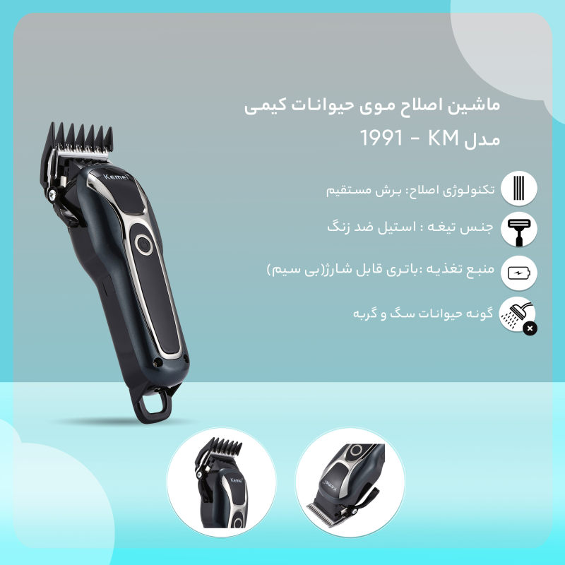 ماشین اصلاح حیوانات مدل جیمی 6063 مخصوص اصلاح موی حیوانات ( گربه و سگ ) میباشد این دستگاه همچنین دارای تیغ یدک میباشد . این مدل دارای تیغه های مخصوص و 4 عدد شانه به سایز های 3 -6 – 10 – 13 میباشد همچنین در داخل جعبه ناخن گیر و سوهان ناخن و روغن و برس تمیز کننده قرار داد تا اصلاح کامل را برای حیوان ( گربه و سگ ) داشته باشد این دستگاه مزیتی که دارد این است که در صورت نداشتن شارژ برای اصلاح با 5 دقیقه شارژ کردن میتوان باسیم از آن استفاده کرد حتما قبل از اصلاح باید روی تیغه ها به مقدار کافی روغن زده شود .