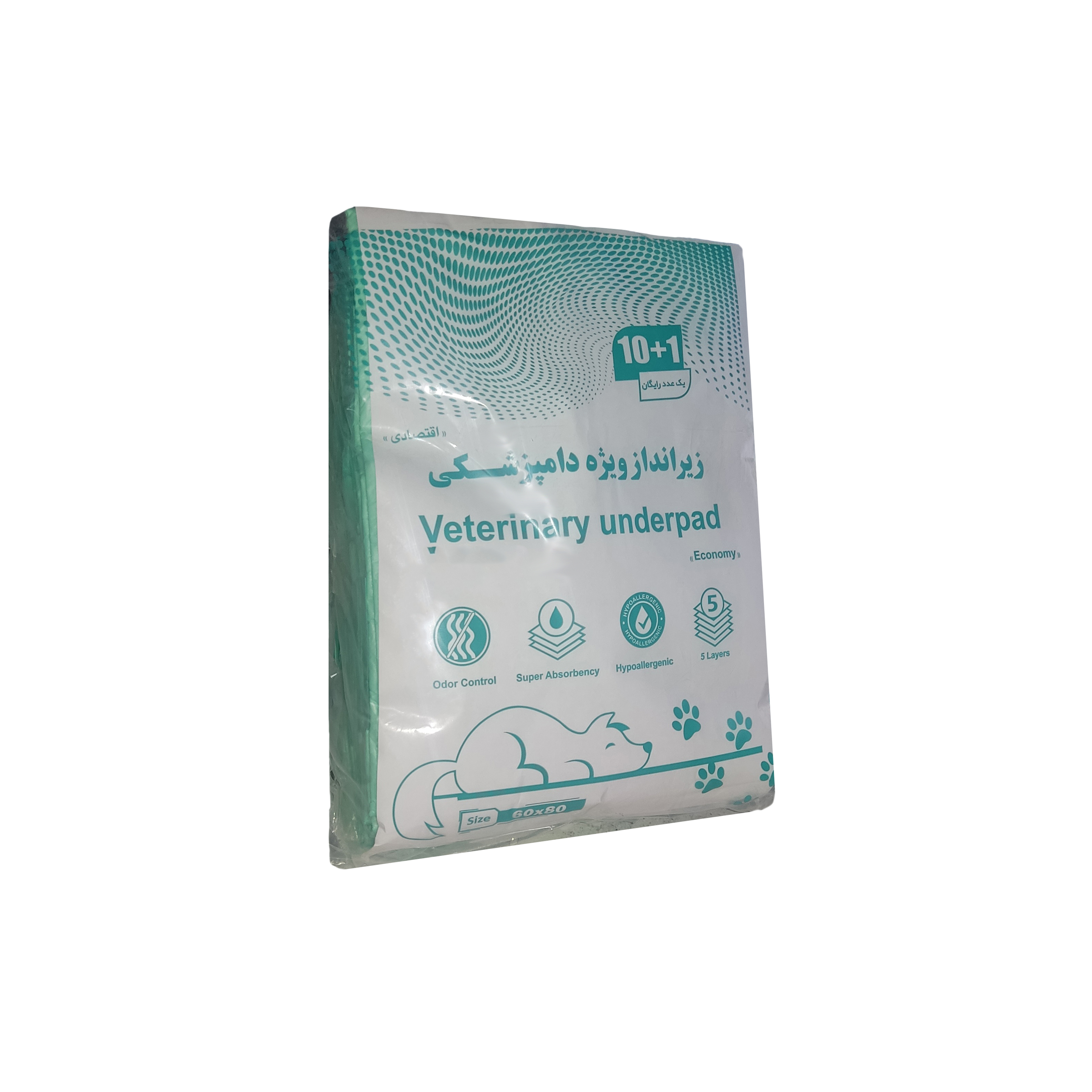 زير اندازهاي فوق جاذب اکونومی : به شما در خشك و تميز نگهداشتن موثر كليه سطوح از قبيل پاركت ، سراميك ، صندلي ، تخت ، ملحفه و از اين قبيل ، اطمينان خاطر مي دهد. زیراندازهای جاذب قابل استفاده در منازل، بيمارستانها ، كلينيكهاي دامپزشكي و پانسيون ها می باشد. این محصول دارای ویژگی هایی از قبیل قدرت جذب فوق العاده، آنتی باکتریال، ضد حساسیت، ضد بو، ضد نشتی و حاوی پودر SAP می باشد که امکان جذب تا 3 لیتر مایعات را فراهم میاورد. توجه فرمایید این محصول یکبار مصرف بوده و بعد از مرطوب شدن و جذب مایعات باید تعویض گردد.