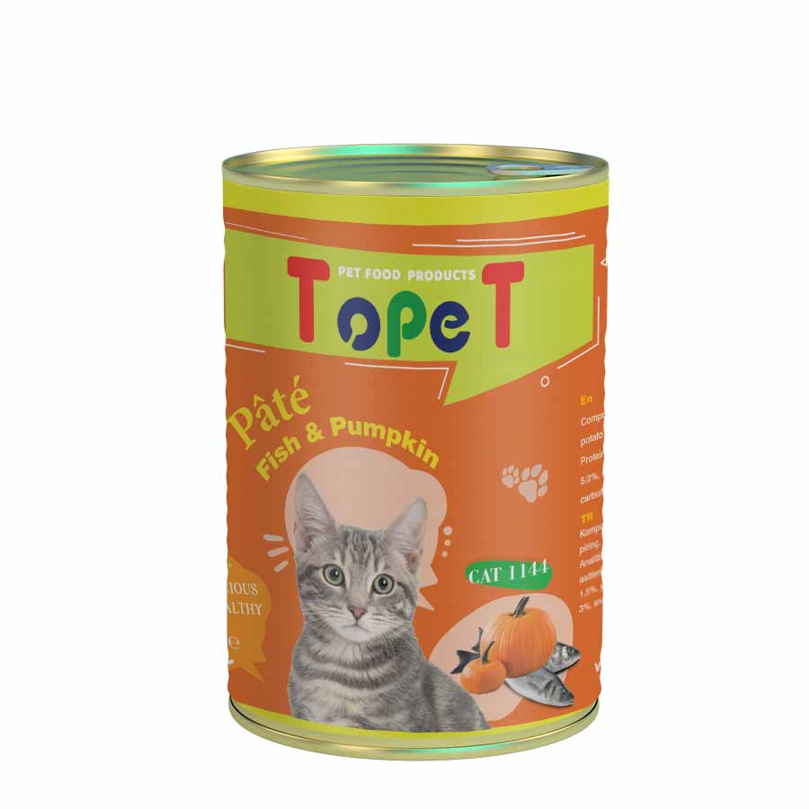 کنسرو غذای گربه تاپت مدل ماهی و کدو حلوایی وزن 400 گرم