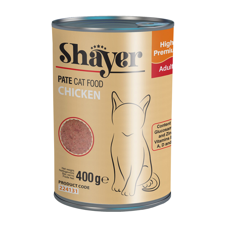کنسرو گربه شایر با طعم مرغ حاوی امولسیون یکنواخت شده مرغ همراه با جگر، کمی برنج، هویج، نخود سبز، کلم و استخوان میباشد. حاوی پروتئین، کربوهیدرات، مواد معدنی، فیبر و چربی، ترکیب مایعات و افزودنیهای طبیعی مغذی است. این کنسرو با توجه به داشتن پروتئین و فیبر لازم و مواد مغذی کاملا طبیعی برای تمامی سنین مناسب است.
