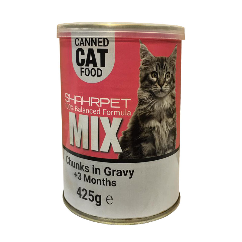 کنسرو غذای گربه شهرپت مدل Mix وزن 425 گرم با طعم گوشت و مرغ تهیه شده از مواد اولیه تازه و مرغوب یک غذای کامل برای گربه شماست. این کنسرو به شکل پته و حاوی گوشت مرغ، گوشت گاو، جگر تازه، غلات و سبزیجات تازه می باشد. غذای آماده گربه شهرپت کنسروی بسیار خوش خوراک، مقوی و آسان هضم است. کنسرو مرغ و گوشت گربه شهرپت با انواع ویتامین ها مانند ویتامین A, D, E, K و مواد معدنی کمیاب غنی گردیده است تا تمامی نیازهای تغذیه ای گربه تامین شود. این کنسرو برای گربه های همه نژادها از سه ماهگی به بعد قابل استفاده می باشد. بعد از باز کردن درب کنسرو آن را در یخچال نگهداری نمایید.