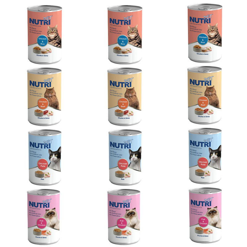 کنسرو غذای گربه نوتری پت مدل New وزن 425 گرم بسته 12 عددی شامل کنسرو پته مرغ، کنسرو گوشت و مرغ، کنسرو مرغ و ماهی و کنسرو مرغ و برنج گربه نوتری پت می باشد. این محصول از مواد اولیه 100% طبیعی تهیه شده است و حاوی تکه های تازه گوشت، مرغ و ماهی ،غنی شده با ویتامین ها و مواد معدنی مورد نیاز بدن گربه به صورت چانک (لقمه) در آب گوشت غلیظ می باشد.