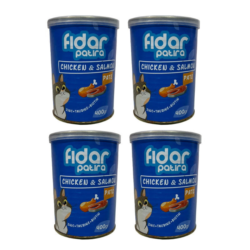 کنسرو گربه فیدار پاتیرا مدل ChickenSalmon وزن 400 گرم بسته 4 عددی حاوی 4 عدد کنسرو 400 گرمی گربه با طعم مرغ و سبزیجات می باشد. این محصول کاملا طبیعی و فاقد افزودنی می باشد.